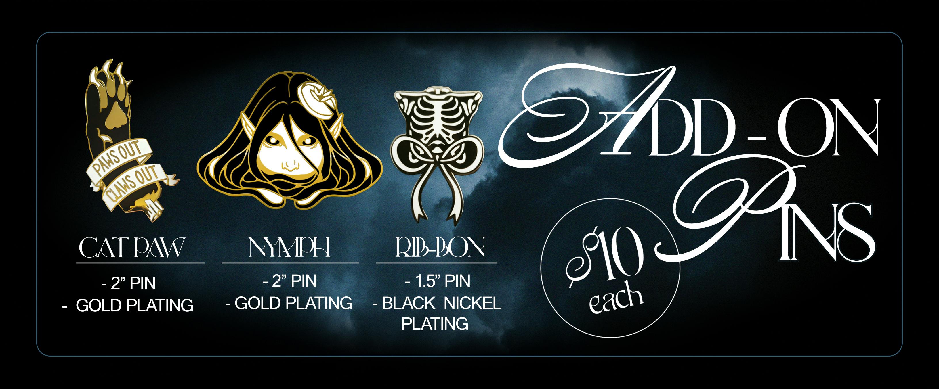 **Be sure to pledge for the pins that you want!!** Any pin design that doesn't get funded through Backerkit, I will self-fund outside of the campaign! Unlocking these goals through Backerkit will help alleviate any costs at the end of the campaign, so be sure to add all the pins you want to back and explore the "Add-ons" page!