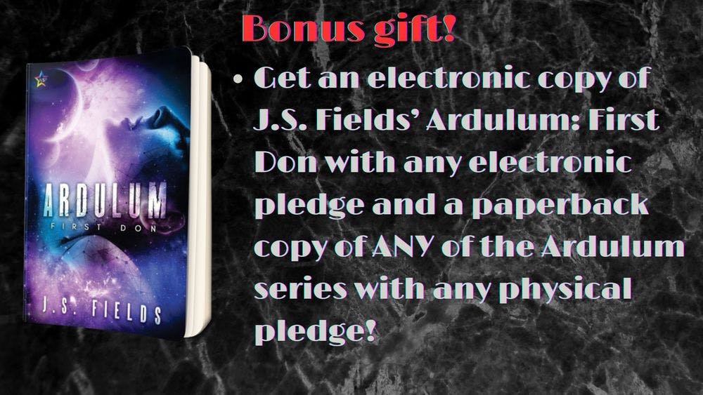 Extra special bonus! J.S. Fields has graciously offered to gift first edition copies of the Ardulum series to backers in the first 48 hours! These books are no longer in print, and have a different cover from the Ardulum books published through Space Wizard. Get your collector's version by backing early!