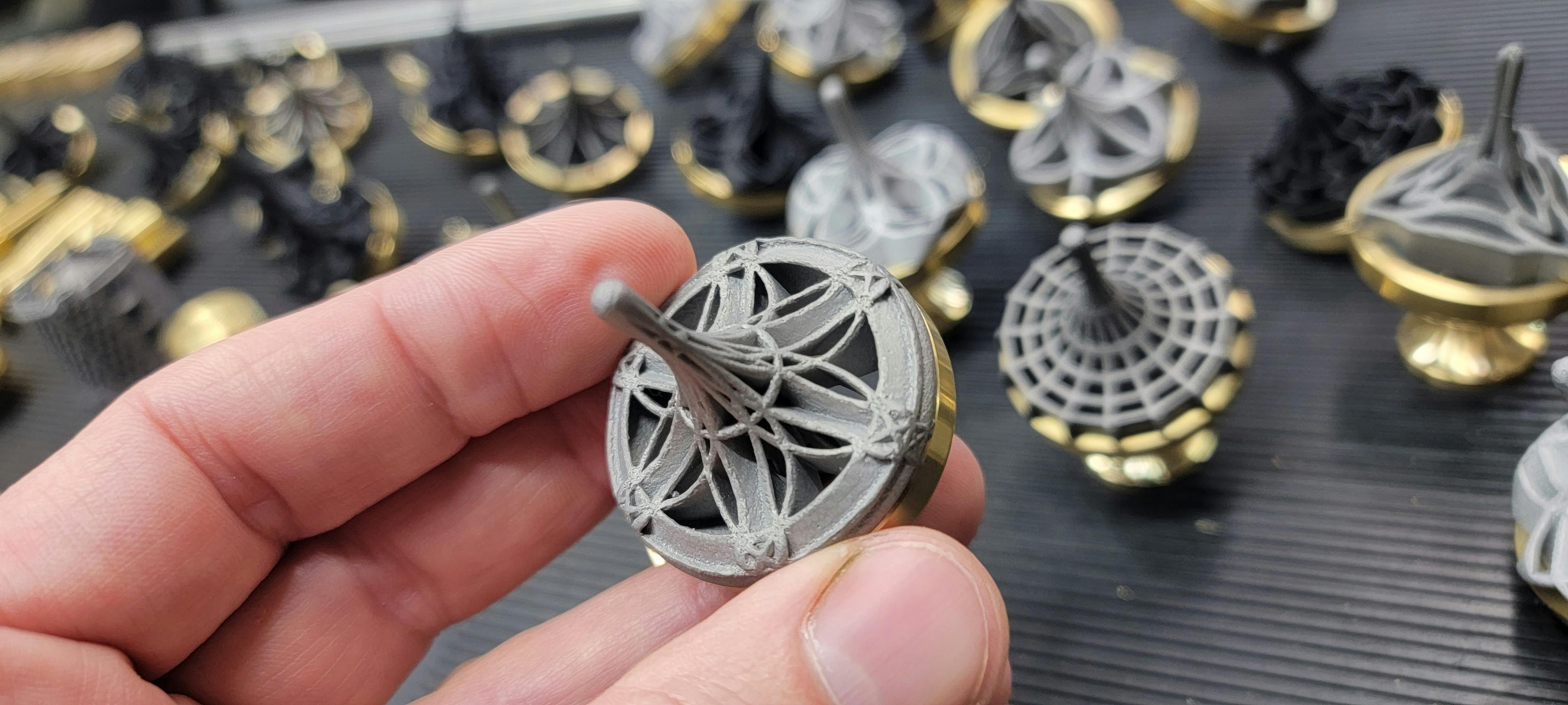 Prototype spinning tops combining AM, Lattice Topology, and CNC machining