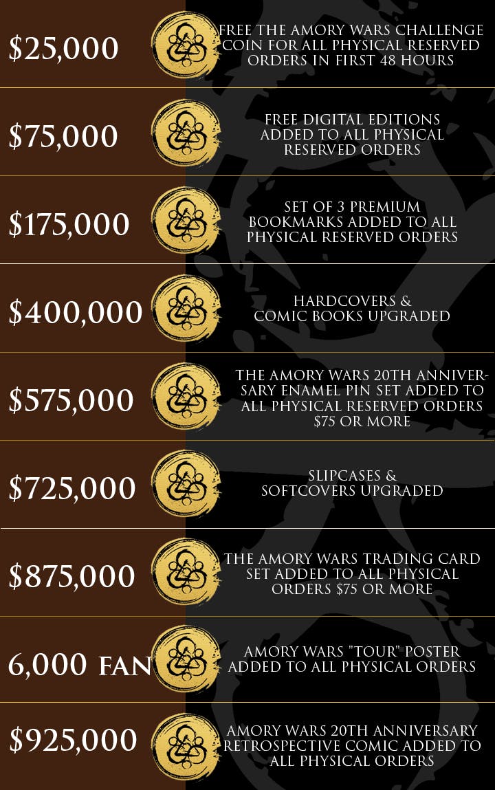 Embrace your destiny and reserve your limited edition set before they are sold out! Check out the campaign level details below and in the rewards section to determine which offering best completes your THE AMORY WARS collection.