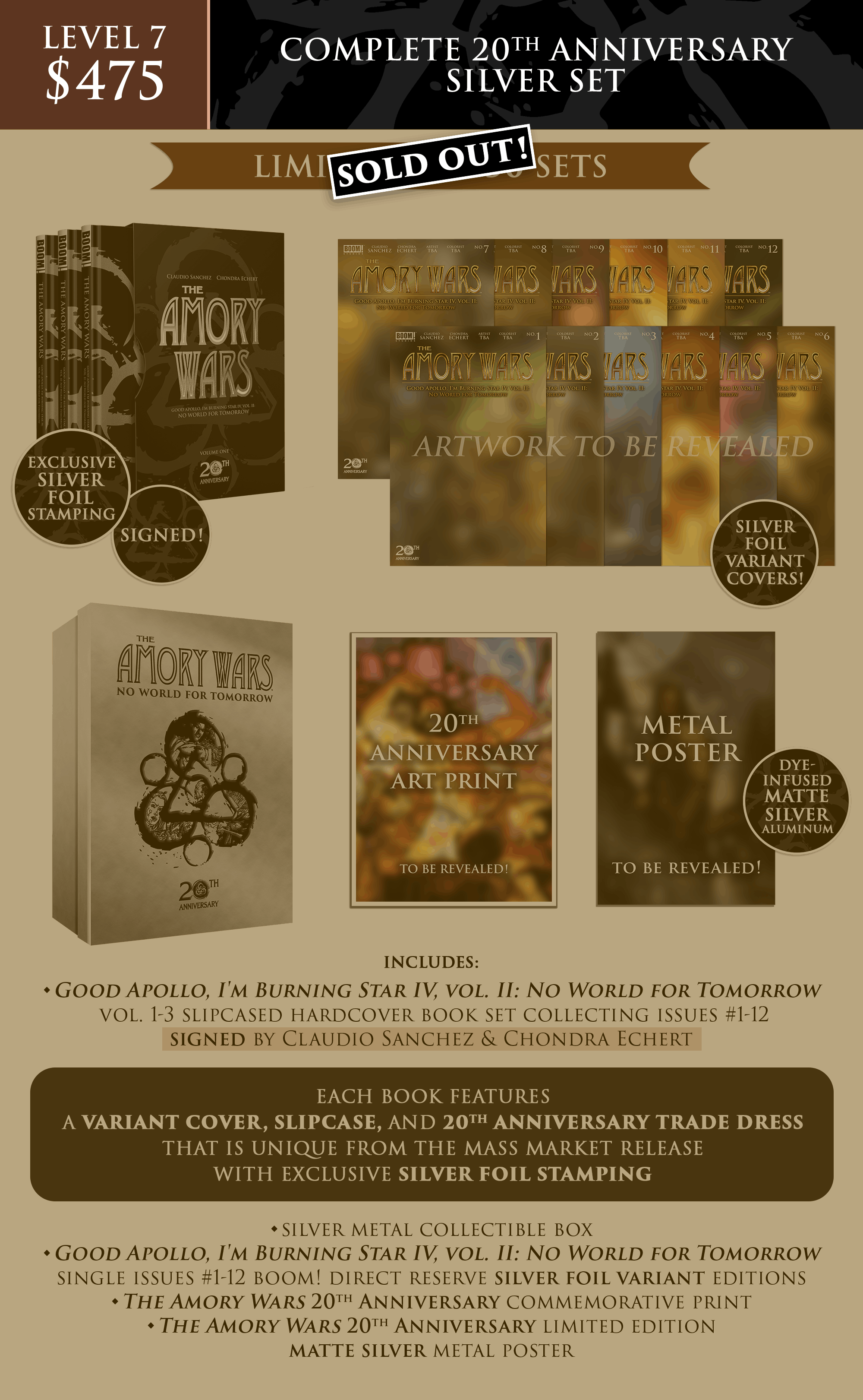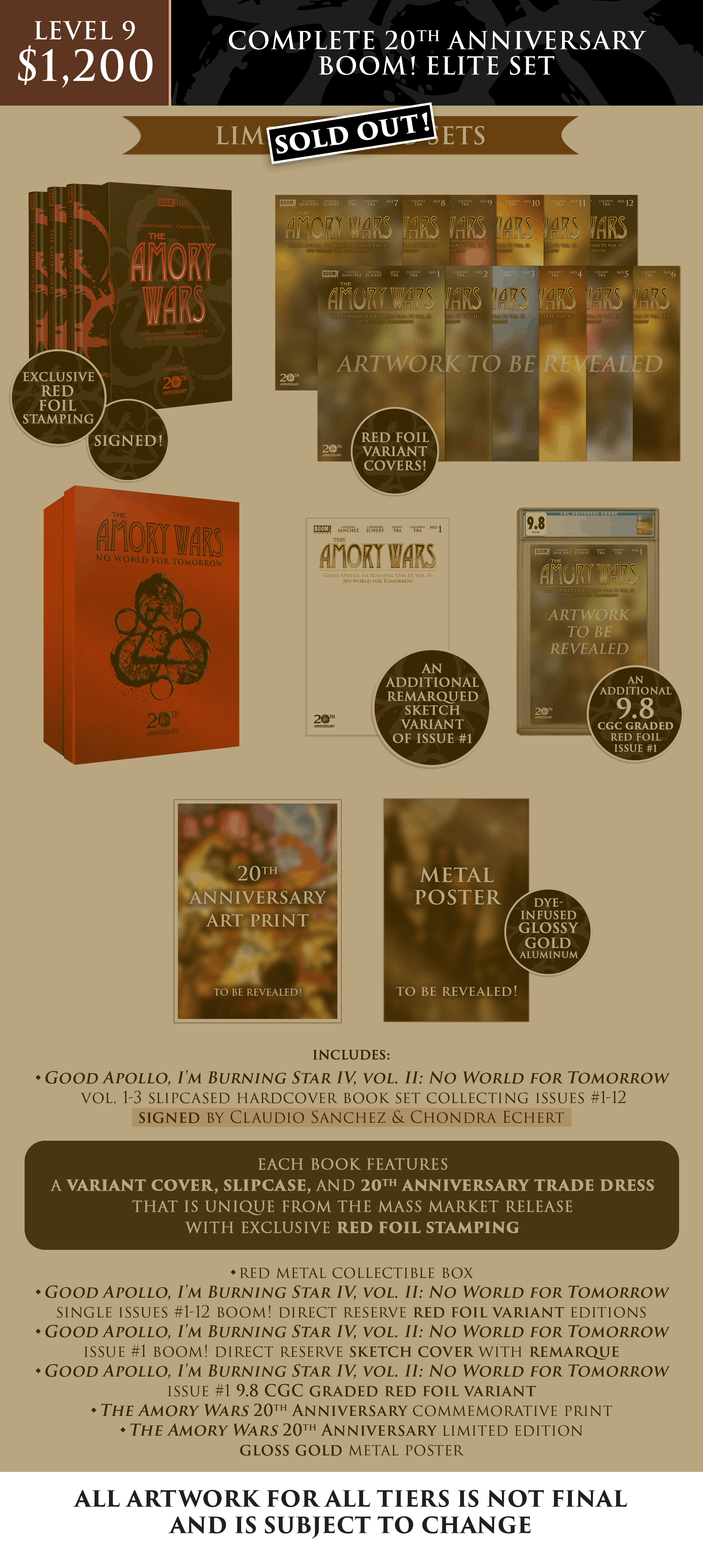 And while both the individual comic books and collected editions of THE AMORY WARS: GOOD APOLLO, I’M BURNING STAR IV, VOL. II: NO WORLD FOR TOMORROW will be made available through comic shops, bookstores, and a myriad of locations where books are commonly discovered, these 20th Anniversary commemorative editions will only be available exclusively through this BOOM! Direct Reserve campaign, limited to their initial print run, and never-to-be reprinted again.