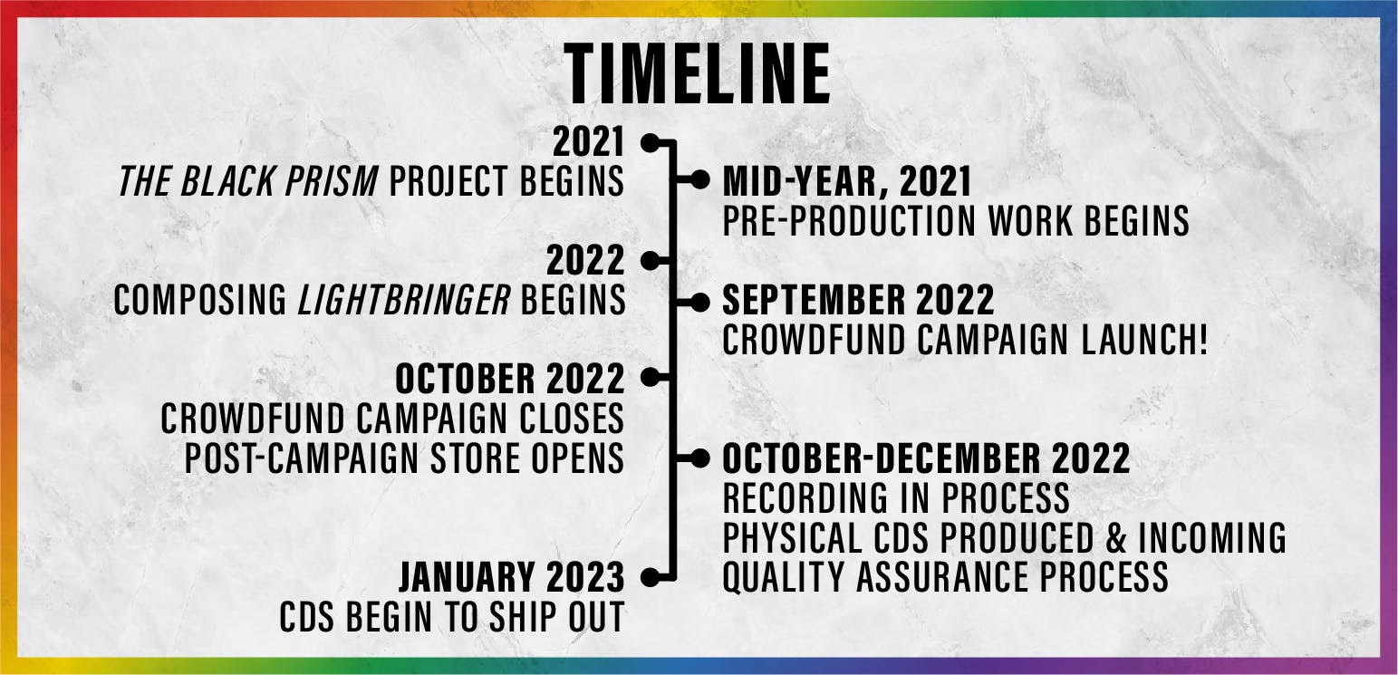 Please note that we have streamlined what we are doing for this project. By hitting our primary goal, we will be able to fund a five-track Black Prism album. As we hit further achievements, we will be able to record soloists and add additional tracks to the Black Prism album!