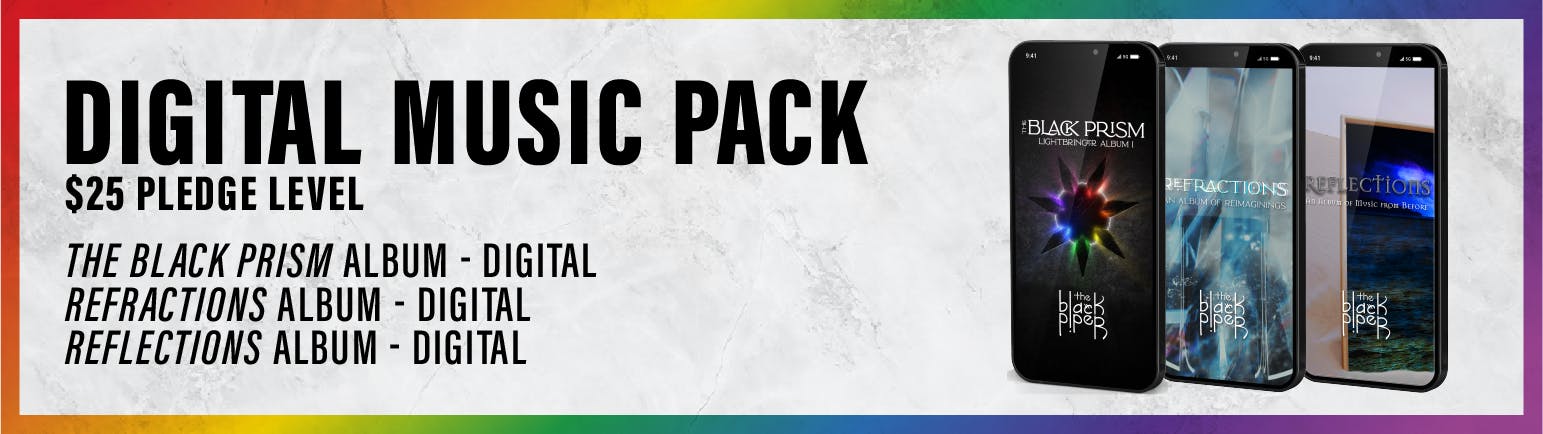 We are pleased to present The Black Prism, together with two additional Black Piper albums, Refractions and Reflections! Select any Pledge Level below to learn more about what is offered and to pledge.