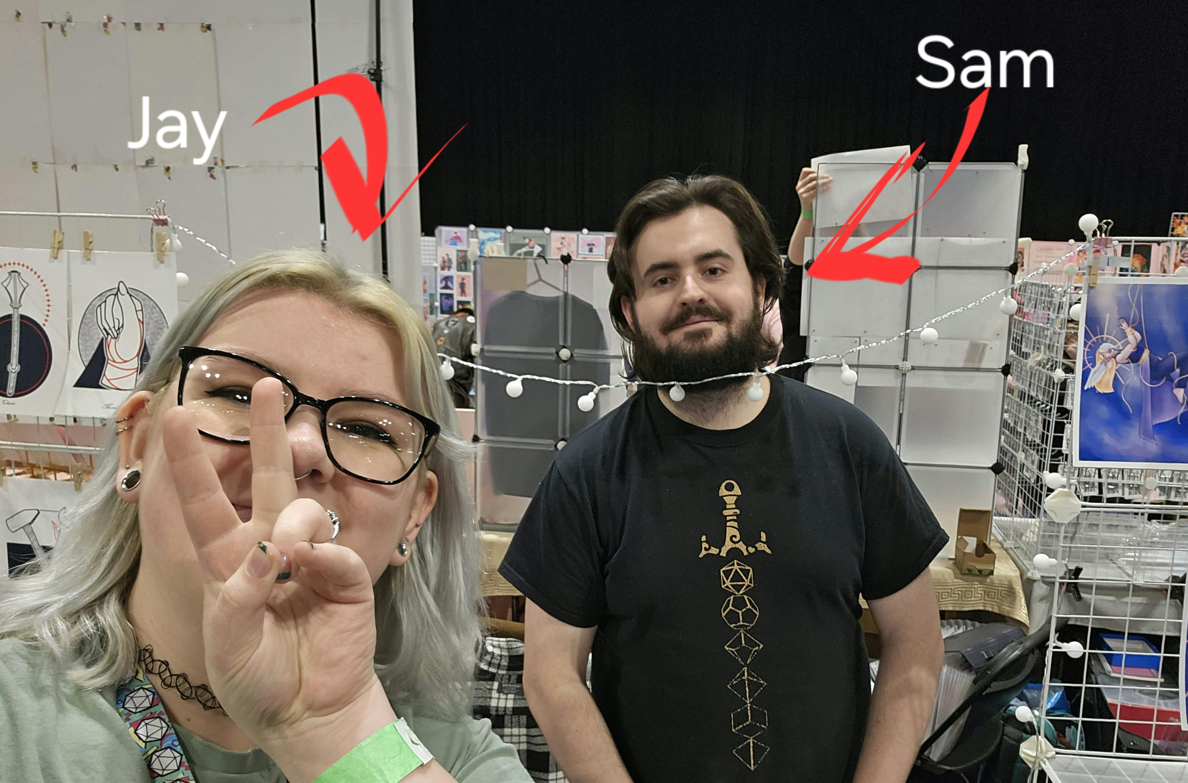 Part way into making this project it became clear I could not do this entirely as a one man show; partially because although I enjoy art and writing I'm not the best with the more technical parts of Homebrew. I also thought it would be useful to have a second pair of eyes on this project to see if it made sense outside of myself. That's why I ended up roping in my wonderful fiancé Sam. He's helping with quality control, checking my writing as well as contributing a bunch of it, as well as being the brains behind how to mechanically use the deck in world. He's also the main brains behind the boons deck. He's an experianced homebrew DM and well versed in my wild ideas and how to make them usable. Sam has been a massive help in this project already and will continue to help it take shape.