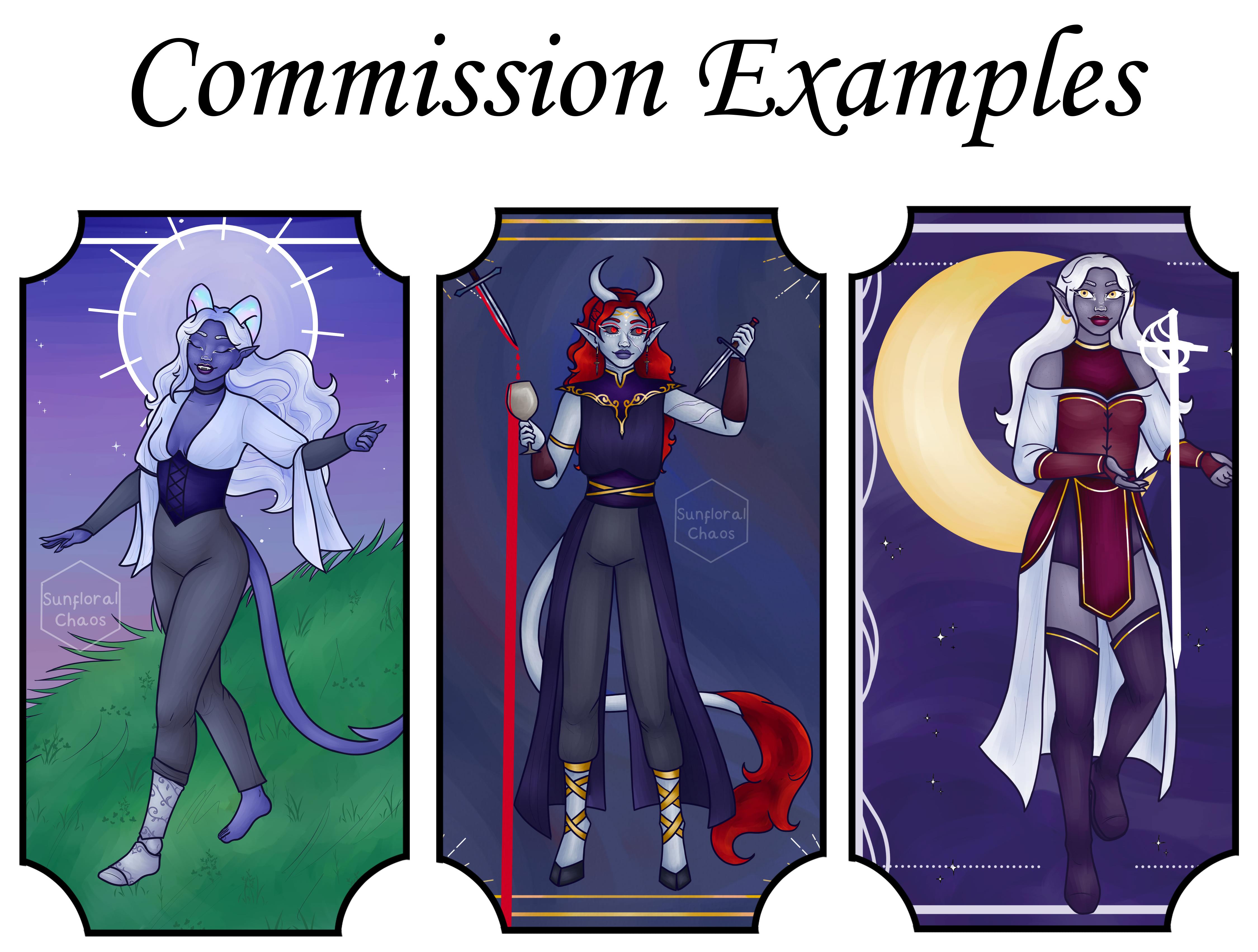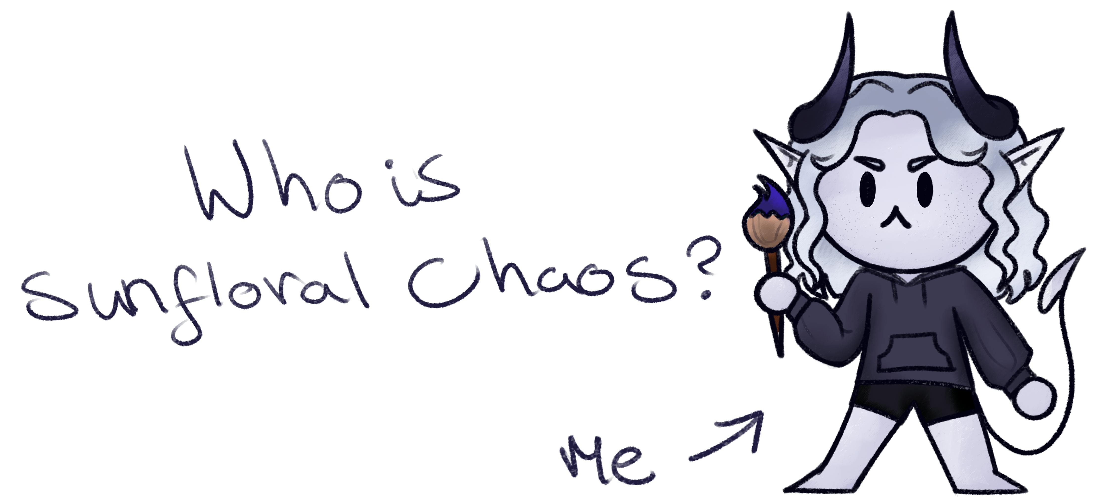 Hi! I'm Jay, known better online as Sunfloral Chaos. I mostly do character art but dabble in tarot cards, and weaponry, I also design merch bits that I sell. Most of my work is TTRPG related or inspired.