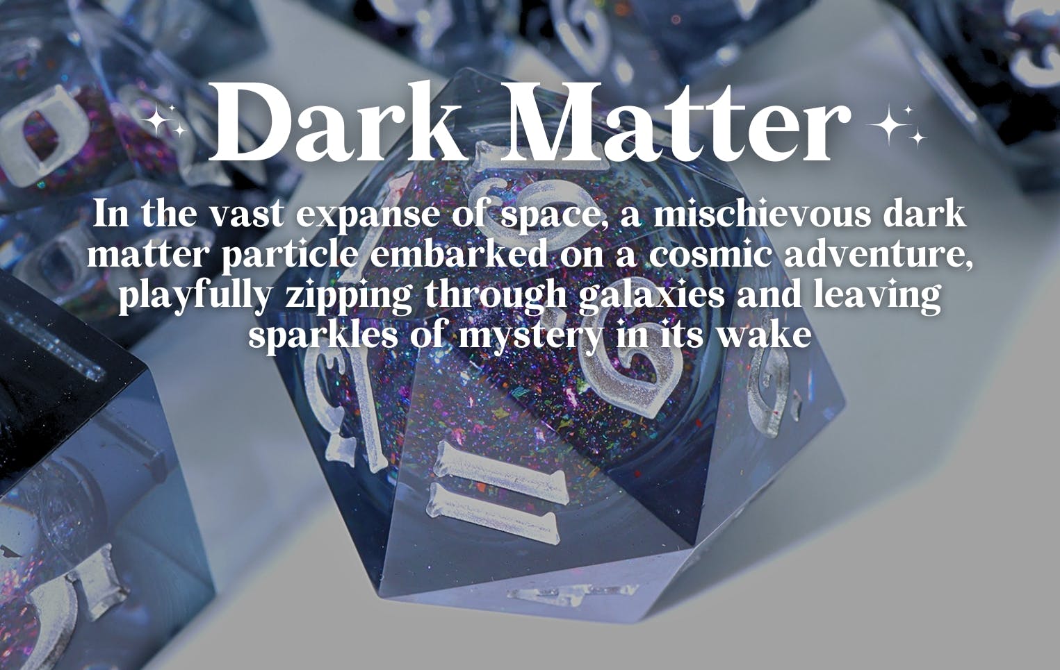 Embark on a journey through the cosmos with Visions of a Thousand Galaxies, a stunning collection of liquid core, sharp-edge dice that draws inspiration from the captivating colors and mesmerising sights of the universe.