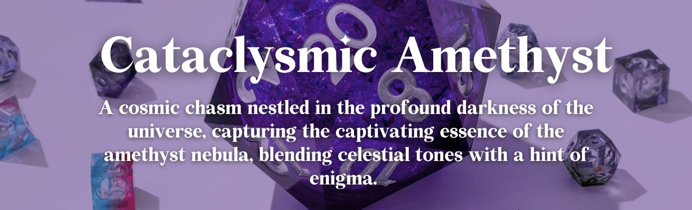 Behold, the Visions of a Thousand Galaxies! This exceptional collection of liquid core, sharp-edge dice has been inspired by the universe's captivating colours and mesmerising looks. Let the dice transport you to the farthest reaches of the universe with every roll, and revel in the magic of the stars.